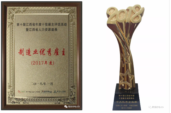 1月13日,由中國江西網、江西人才人事網、南昌高新區人社局共同舉辦的第十屆江西省年度十佳雇主頒獎典禮暨2018年度江西省人力資源盛典在南昌隆重舉行。聯創光電從全省427家企業中脫穎而出,榮獲2017年度“制造業優秀雇主”稱號,股份公司總裁孫寧先生榮獲“十大優秀企業家”稱號。