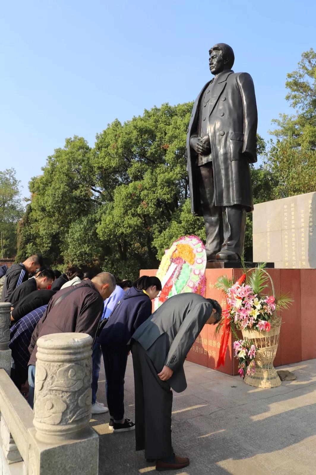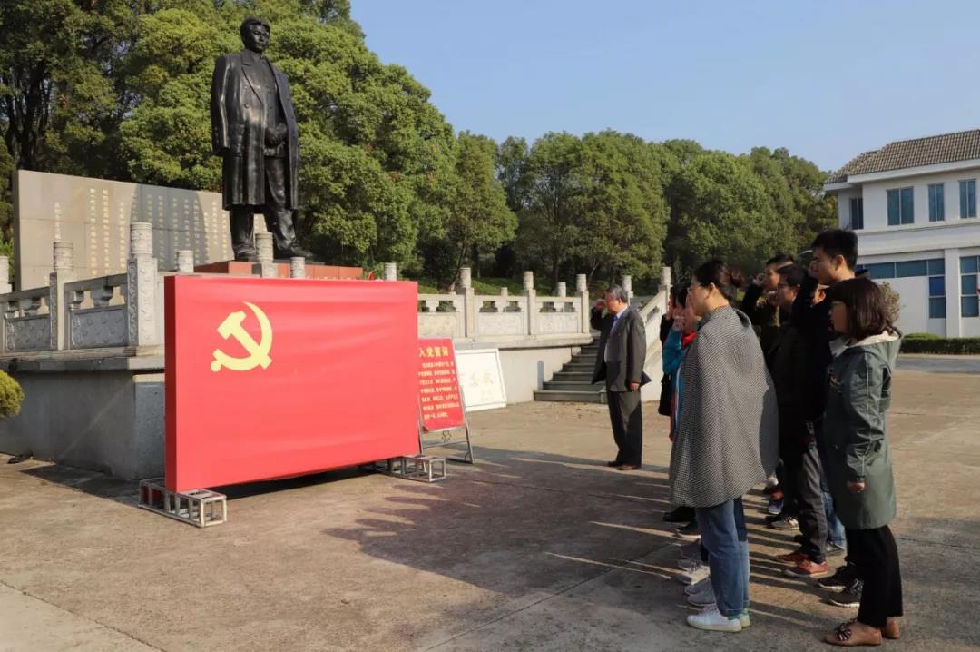 在方志敏銅像前、在鮮紅的黨旗前,全體黨員佩戴黨徽,莊嚴舉起右拳,重溫了入黨誓詞,并敬獻了花圈,肅立默哀。