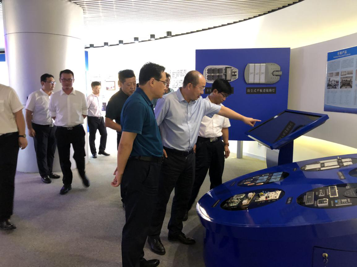 尚市長一行先后參觀了科技展廳、聯創超導、軍工車間,詳細了解企業發展歷程、生產經營、高溫超導、激光產品應用等情況。